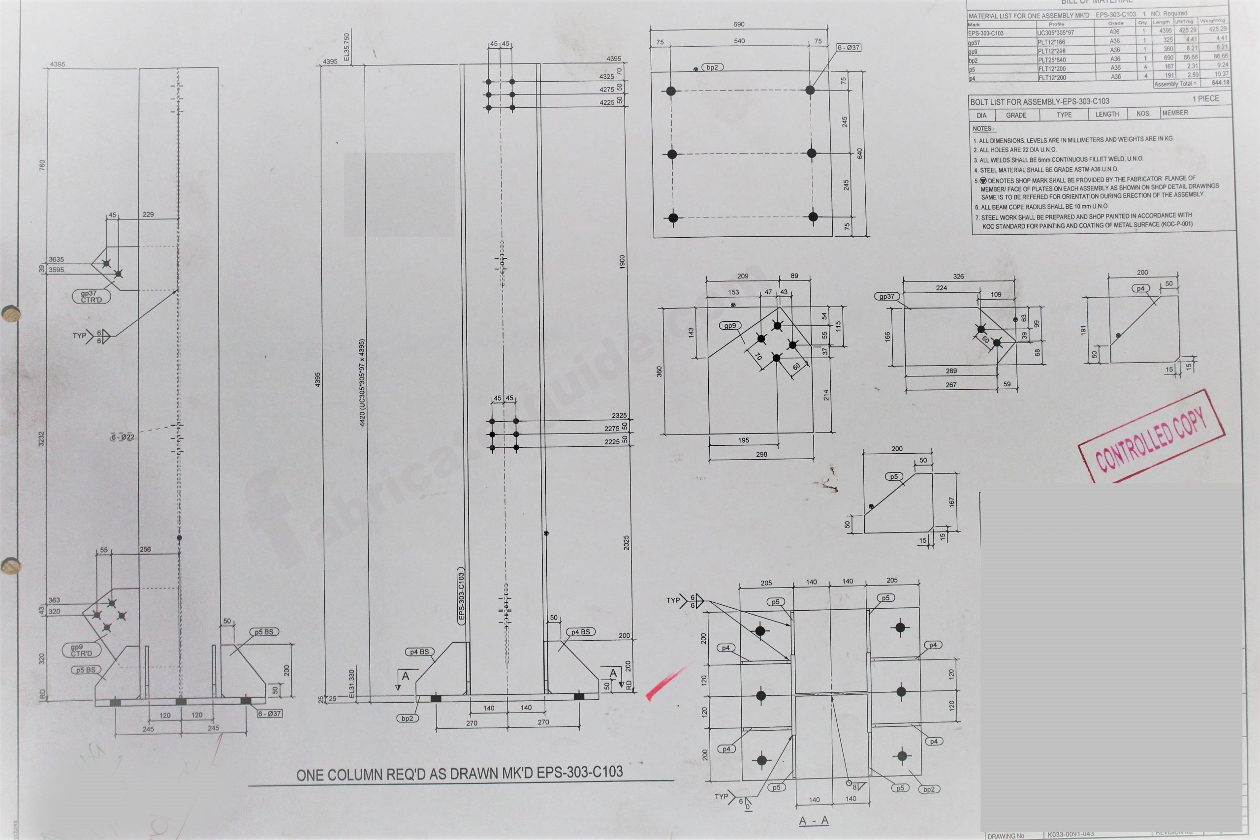 Steel Structure column fabrication drawing download