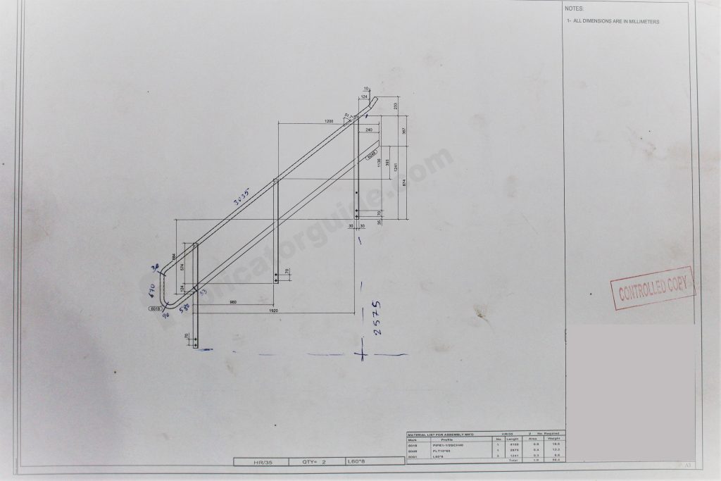 यह एक स्ट्रक्चर सीढ़ी हैंडलिंग साइड व्यू फैब्रिकेशन ड्रॉइंग हैं दाहिना साइड